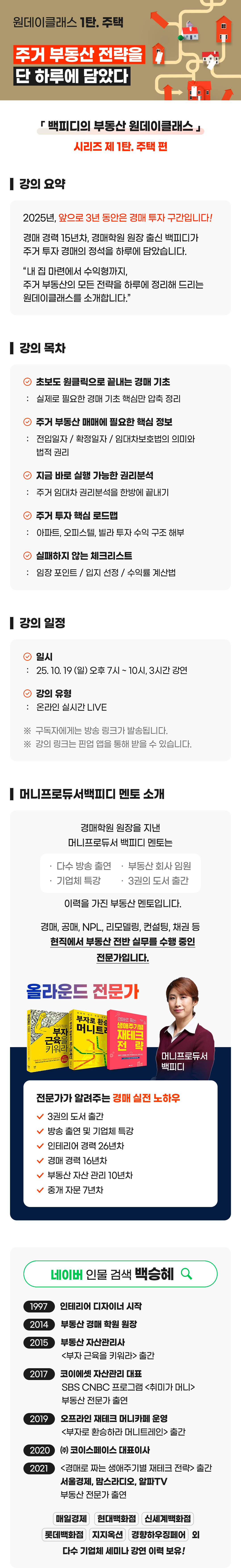 [백피디 원데이클래스 1탄_주택] 주거 부동산 경매 전략을 단 하루에 담았다 커리큘럼