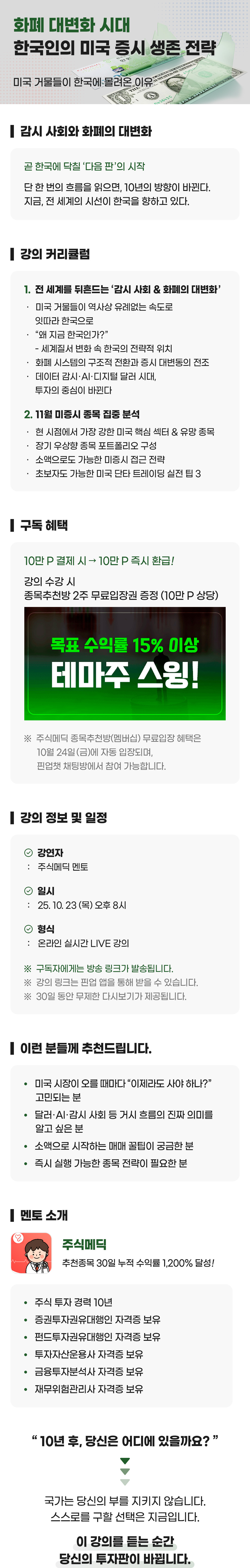 감시 사회·화폐 대변화 시대, 한국인의 미국 증시 생존 전략 (10만P 상당 혜택 증정) 커리큘럼