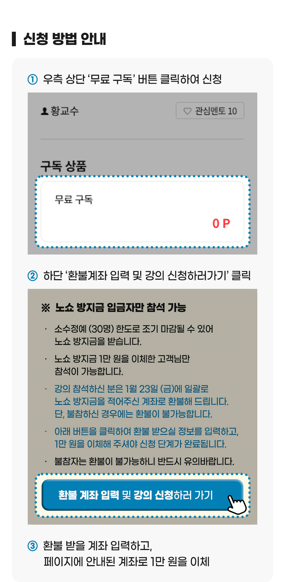 ※ 후원 포인트는1,000P 이상부터 후원하기가 가능합니다. ※ 후원 포인트는 회원님께서 보유하고 계신 충전 포인트 내에서 설정이 가능합니다. ※ 후원된 포인트는 해당 멘토의 후원금 명목으로 지급되는 금액으로 별도의 취소 및 반환이 되지 않습니다. ※ 동일 멘토에게 횟수 제한 없이 중복으로 후원이 가능합니다.