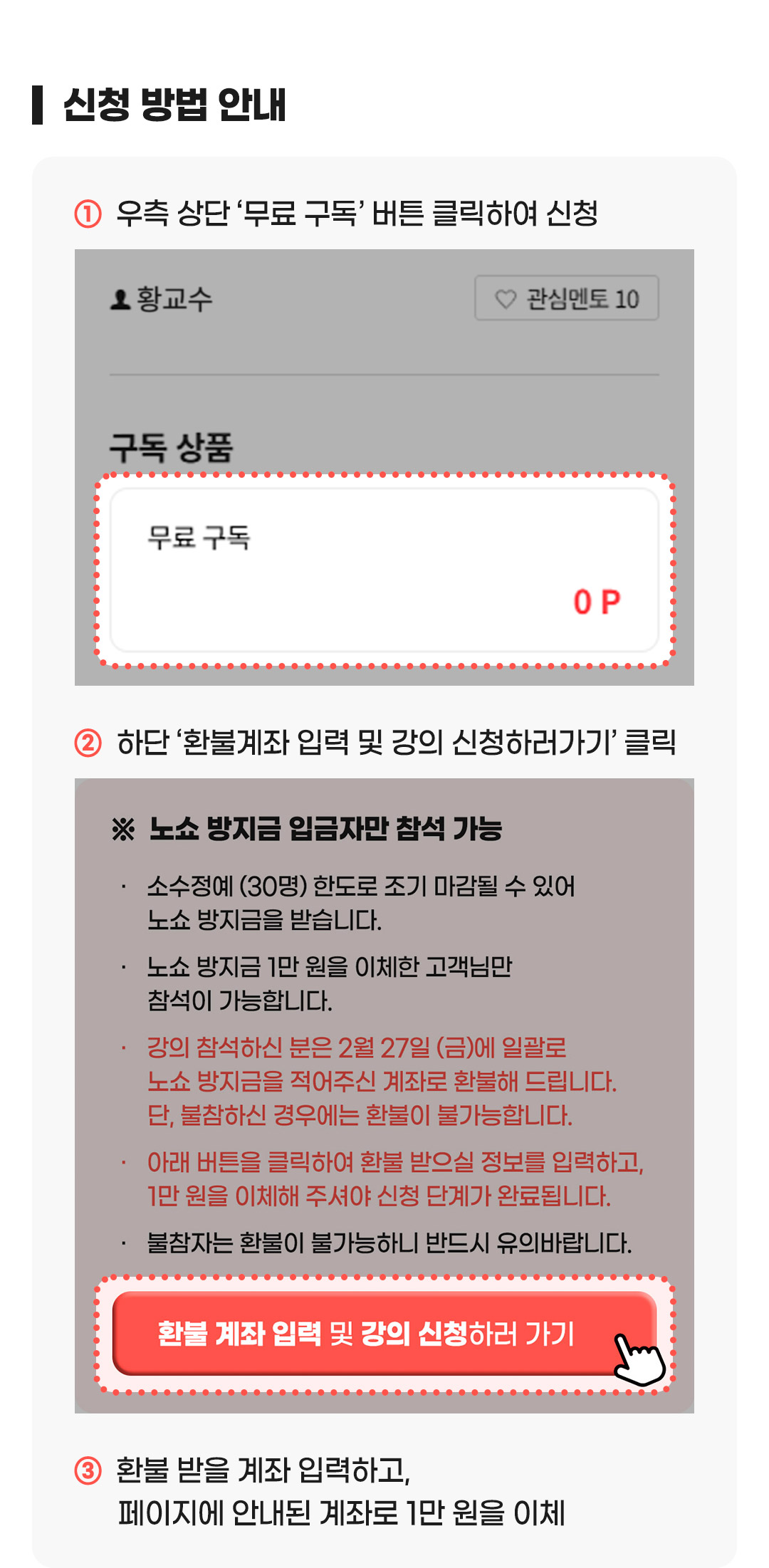 ※ 후원 포인트는1,000P 이상부터 후원하기가 가능합니다. ※ 후원 포인트는 회원님께서 보유하고 계신 충전 포인트 내에서 설정이 가능합니다. ※ 후원된 포인트는 해당 멘토의 후원금 명목으로 지급되는 금액으로 별도의 취소 및 반환이 되지 않습니다. ※ 동일 멘토에게 횟수 제한 없이 중복으로 후원이 가능합니다.