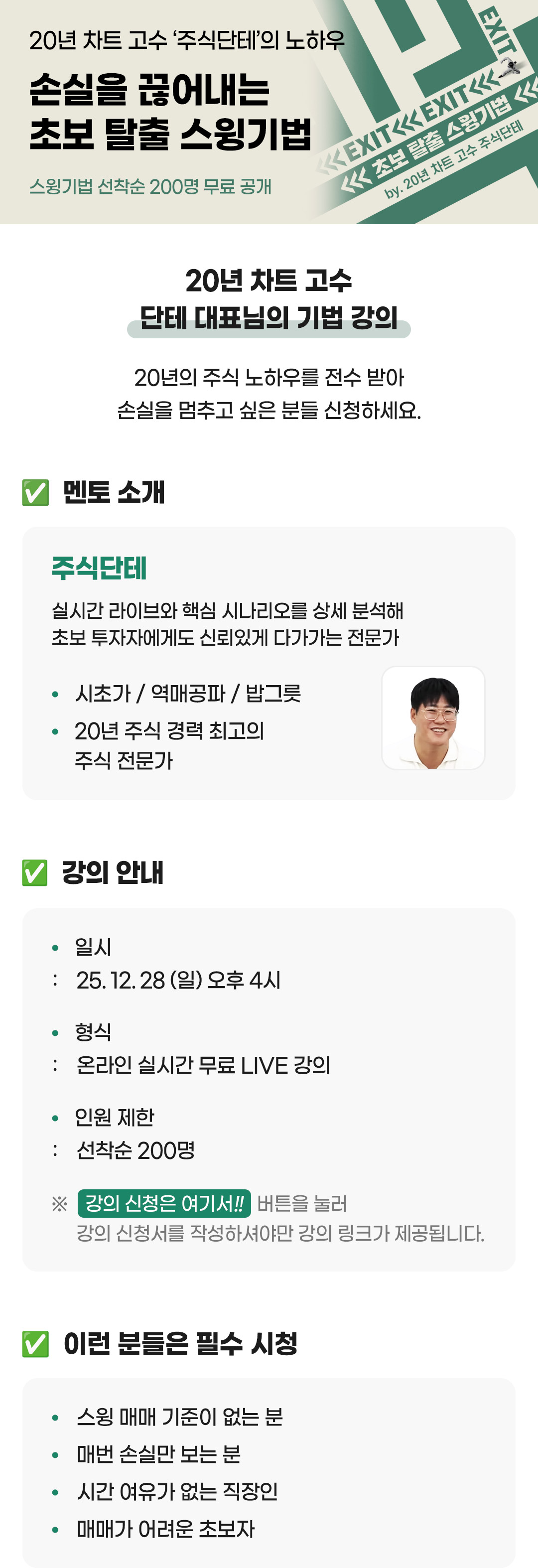 [선착순 200명] 주식단테 20년 노하우, 손실을 끊어내는 초보 탈출 스윙기법 커리큘럼