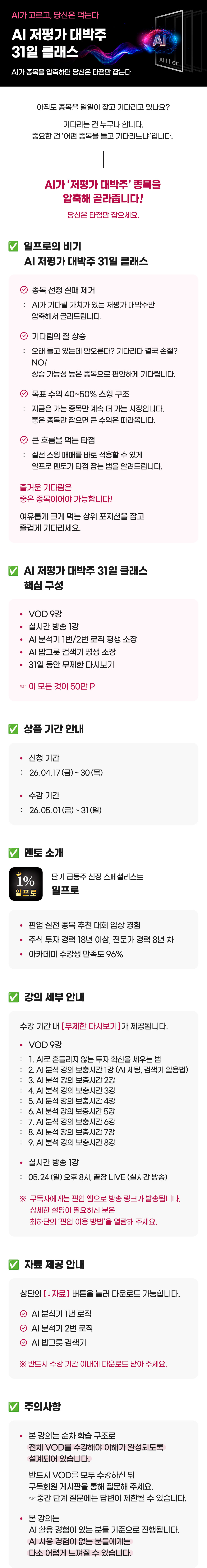 AI 저평가 대박주 31일 클래스 커리큘럼