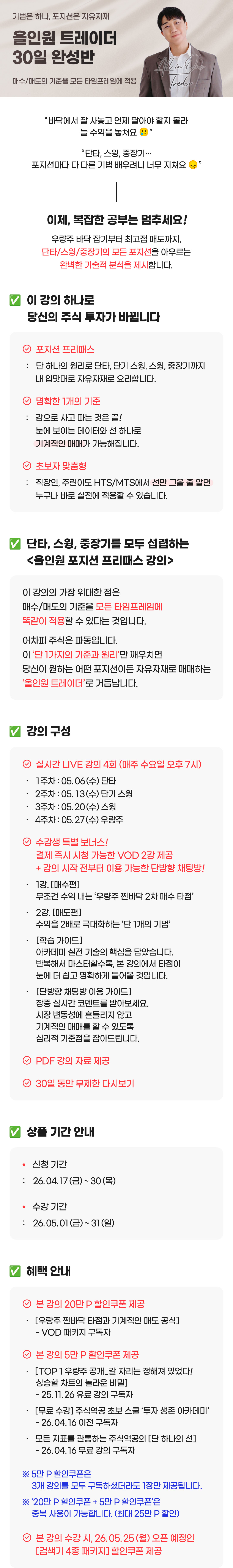 [올인원 트레이더 30일 완성반] 기법은 하나, 포지션은 자유자재 커리큘럼