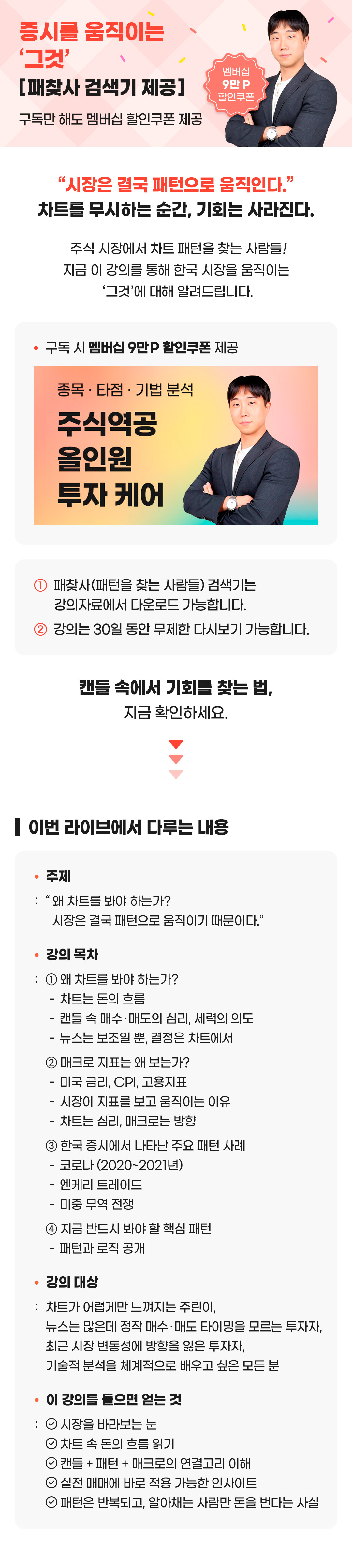 ※ 본 상품은 2025.07.09에 진행한 주식역공 멘토의 '증시를 움직이는 '그 것', 지금 봐야하는 패턴 대공개' 강의를 편집한 영상과 검색기를 결합한 유료 상품입니다.